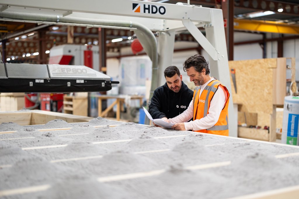 In de woonfabriek worden de woningen stap voor stap opgebouwd. De kant en klare producten gaan dan gelijk naar hun eindbestemming. Prefab bouwen, heet dit. Door op één plek met machines te werken, scheelt dit veel vervoersbewegingen en dus bouwt HDO Groep efficiënter en duurzamer.